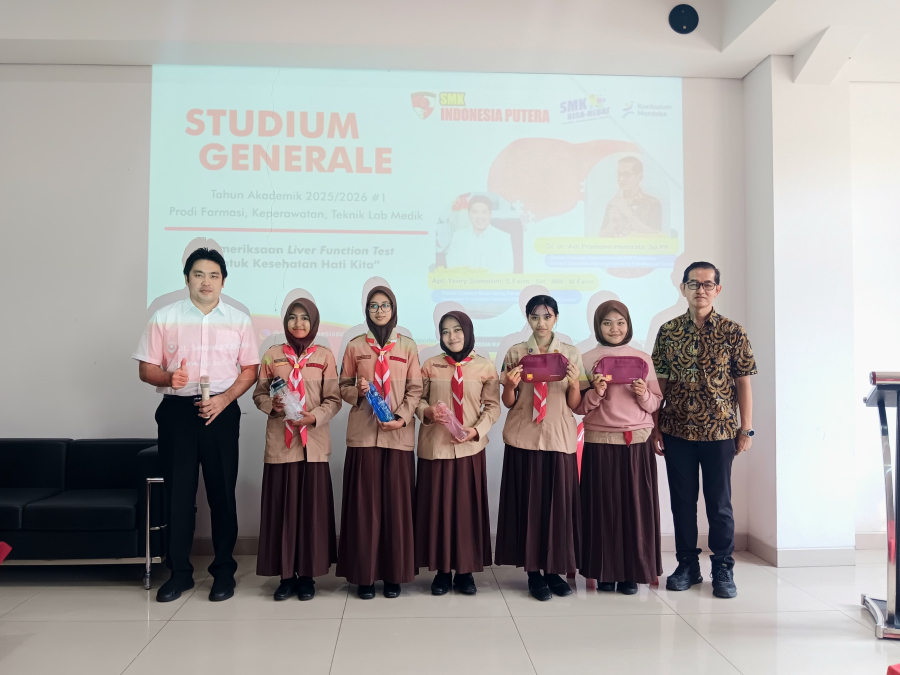 Blitar, 8 Agustus 2025 - Program keahlian Farmasi, Keperawatan, dan Teknik Laboratorium Medik (TLM) di SMK Indonesia Putera menggelar kegiatan Studium Generale dengan tema "Pemeriksaan Liver Function Test untuk Kesehatan Hati Kita" pada Jumat, 8 Agustus 2025 di Gedung SW Tower lt. II.